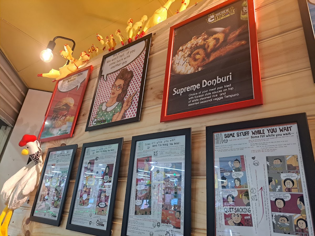 Boneless chicken on a bed of Steamed rice with choice of sauce and aioli on top Served with a side of Daikon (Pickled Radish).